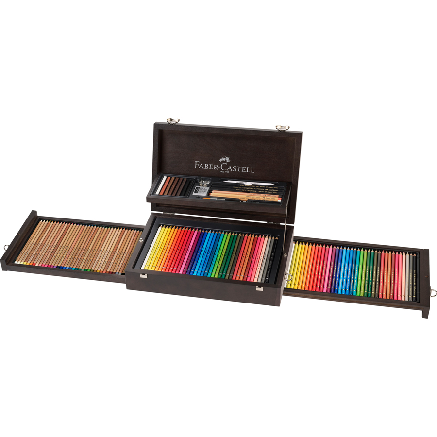 Art & Graphic Collection: Equipo básico con 36 colores en lápices de colores para artistas Polychromos,36 tizas pastel Pitt, lápices acuarelables para artistas Albrecht Dürer y pequeño surtido de Pitt Monocromo en una elegante caja de madera
