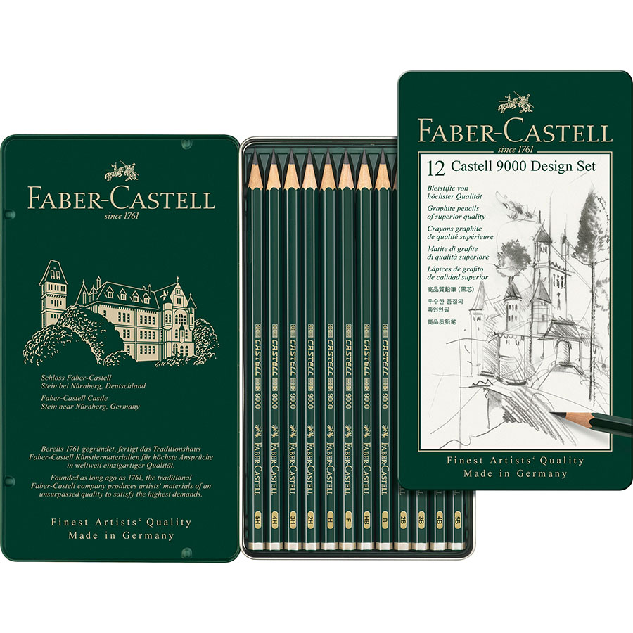 Lápiz Castell 9000, kit de diseño, estuche de metal con 12 lápices Grados de dureza 5H-5B