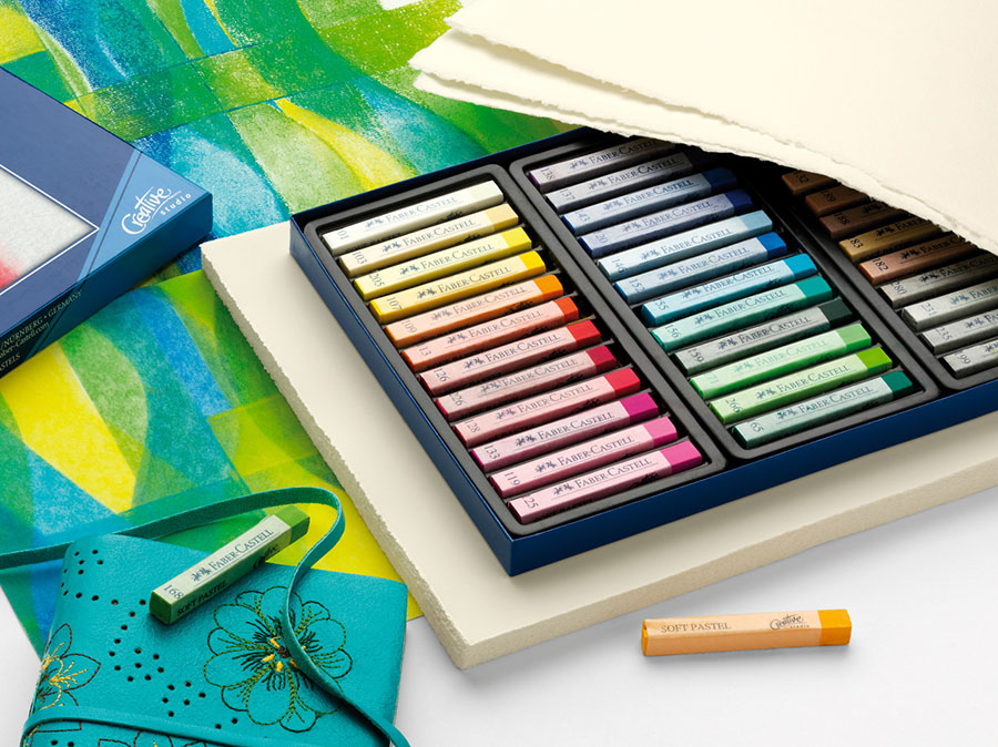 Las tizas pastel blandas son aptas para diferentes tipos de papel, pero consiguen fantásticos efectos sobre otras superficies. Para preservar el trabajo en pastel, recomendamos fijar con spray una vez acabado.