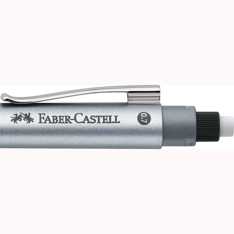 Diseño ergonómico triangular para escribir sin cansarse; Zona de agarre para un agarre seguro y antideslizante; Goma de borrar desenroscable de tamaño grande; Mina resistente a la rotura de 0,7 mm: ideal para escribir; Rellenable con minas y gomas de borrar de repuesto; Color: plata