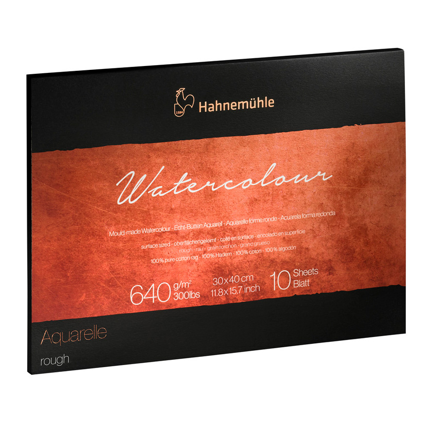 Hahnemühle Watercolour 300 y 640 fijan nuevos estándares para papeles de acuarela de alta calidad. Una especie de algodón seleccionada cuidadosamente ofrece una pureza incomparable y fibras robustas. La selección de las mejores materias primas y un exclusivo material de relleno de origen natural hacen que los papeles de acuarela Watercolour 300 y Watercolour 640 sean de calidad incomparable.