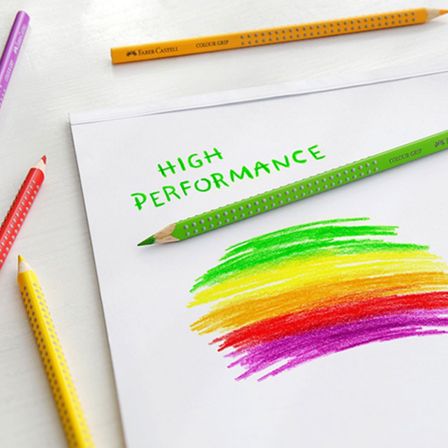 Lápiz de color con zona de agarre patentada para un agarre seguro y antideslizante; Diseño triangular ergonómico; Colores brillantes; Trazo suave; Acuarelable; Mina con máxima resistencia a la rotura gracias a un encolado especial; Lavable en la mayoría de los tejidos; Madera procedente de bosques gestionados de manera sostenible; Acabado de barniz al agua respetuoso con el medio ambiente; Para diestros y zurdos; Con espacio para el nombre; Estuche de metal con 12 piezas