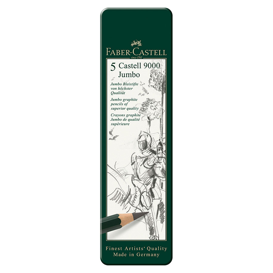 Lápiz para artistas Castell 9000 Jumbo, Estuche de metal con 5 lápices, HB, 2B, 4B, 6B, 8B