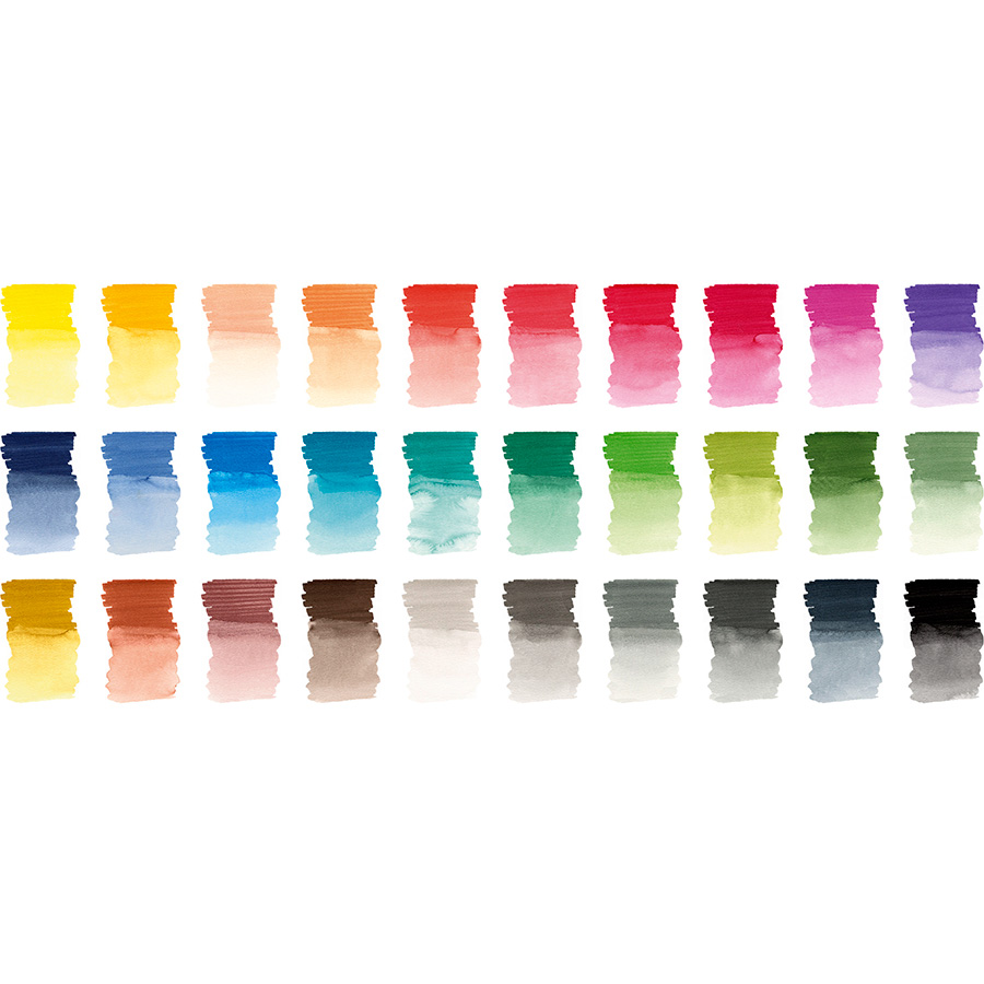 Rotulador de alta pigmentación con dos puntas; Tinta acuarelable con base al agua; Punta de pincel suave para una aplicación homogénea del color y realizar bocetos con facilidad; Punta de fibra estable para contornos, dibujos con detalle y exactitud del trazo; Excelentes posibilidades acuarelables en papel de acuarela; Muy resistente a la luz; No atraviesa el papel; Ideal para trabajos pictóricos, dibujos expresivos o lettering; Estuche con 30 unidades; Disponible de manera independiente o en diferentes tipos de estuche