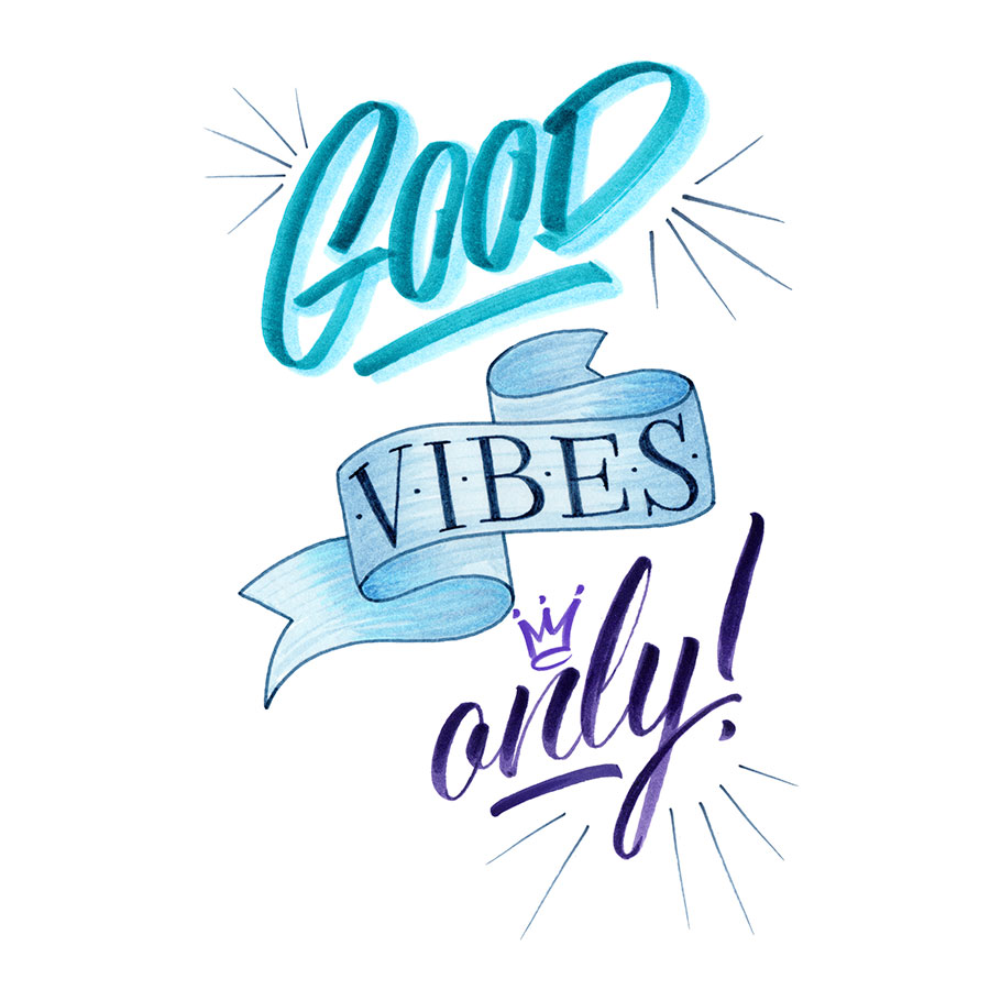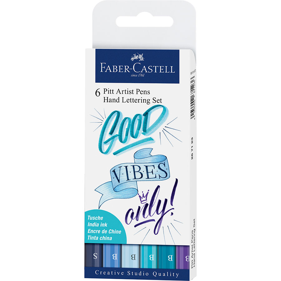 Marcador Pitt Artist Pen, estuche con 6 rotuladores para dibujo de letras a mano, Good Vibes, tonos azules