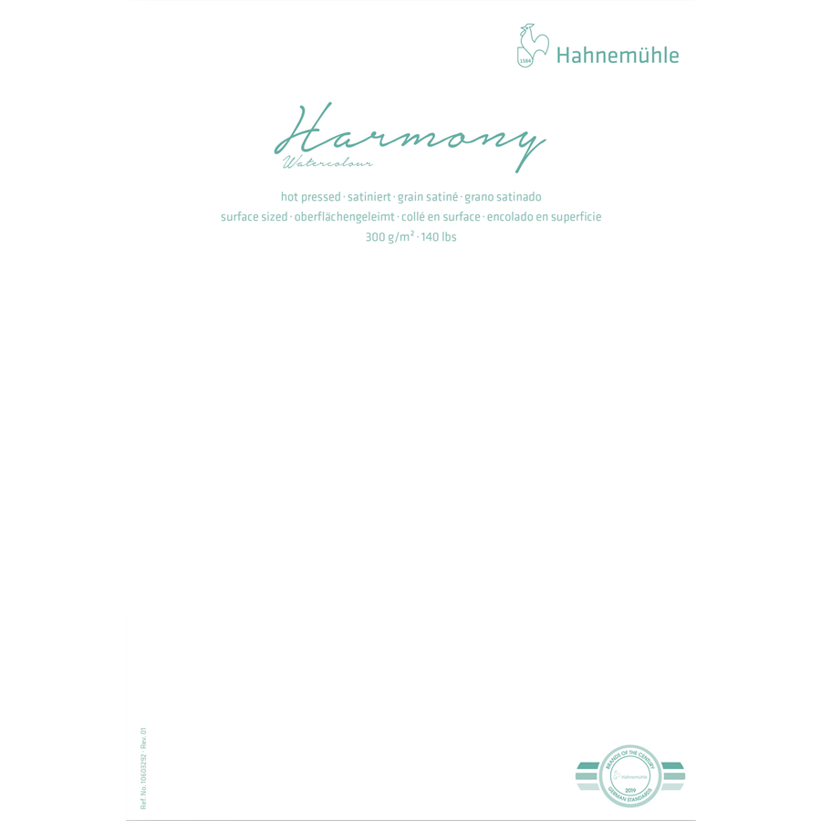 Papel para acuarela de color blanco natural para todas las técnicas húmedas. Harmony Watercolour está encolado en la superficie. En este papel, los colores mantienen su brillo natural de medida excelente, dándole a cada motivo su protagonismo individual. Se deja enmascarar con cinta y en líquido sin ningún problema, permitiendo retirar los productos de enmascarado sin residuos, incluso después de algún tiempo. Con la pintura aún húmeda, el papel permite corregir y reducir con gran facilidad.