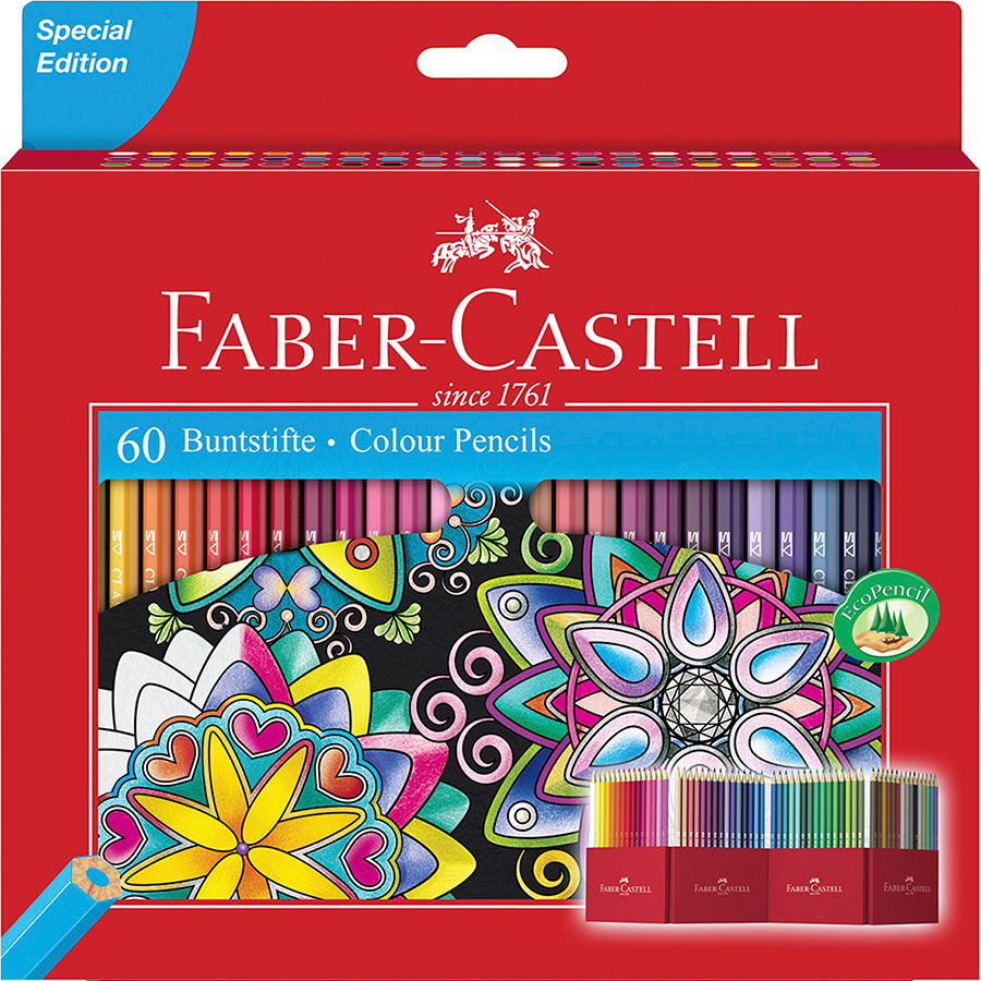 Lápices de colores hexagonales; 60 colores luminosos en atractivo estuche de cartón con base; Incluye colores neón, metálicos y pastel; Mina con máxima resistencia a la rotura gracias a un encolado especial; Madera procedente de bosques gestionados de manera sostenible